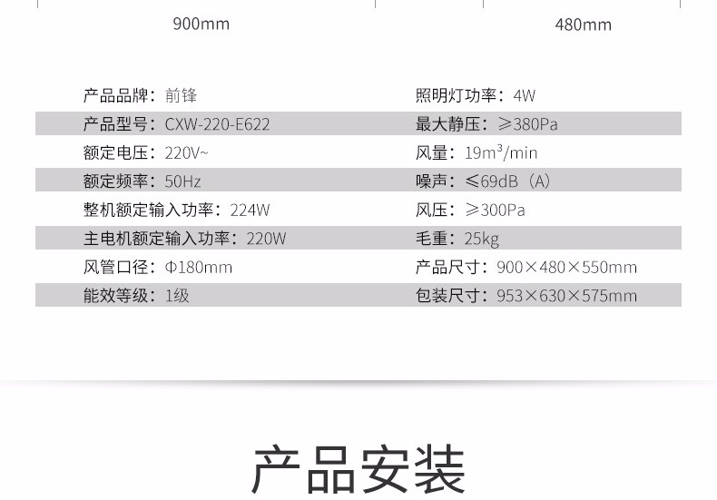 前鋒歐式吸油煙機(jī)E622